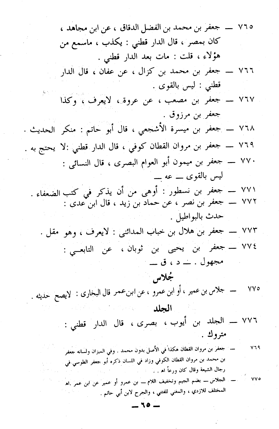 765 - جعفر بن محمد بن الفضل الدقاق: عن ابن مجاهد، كان بمصر، قال الدارقطني: يكذب، ما سمع من هؤلاء، قلت: مات بعد الدارقطني.