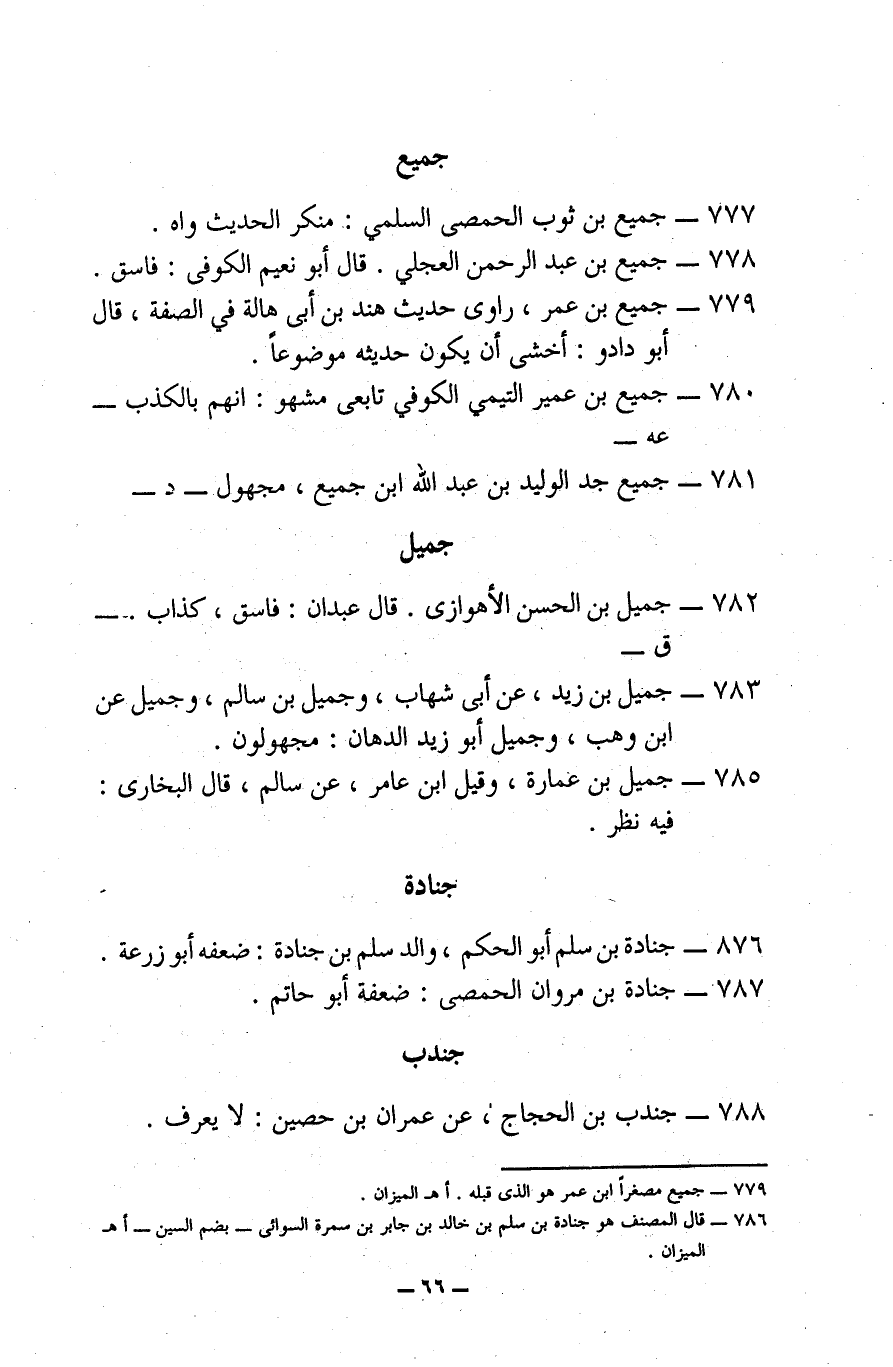 778 - جميع بن عبد الرحمن العجلي: قال أبو نعيم الكوفي: فاسق.