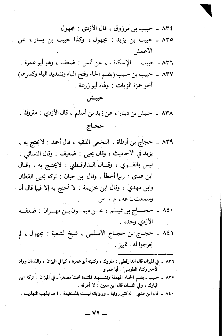 837 - حُبَيِّب بن حبيب: بضم الحاء، وفتح الباء، وتشديد الياء وكسرها، أخو حمزة الزيات، وهاه أبو زرعة.