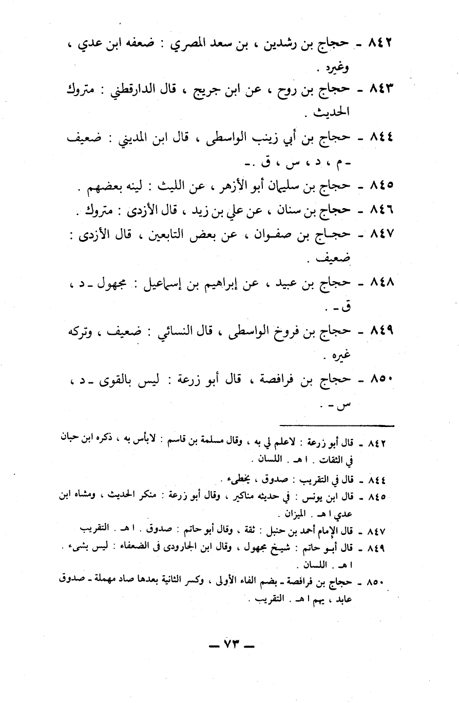 842 - حجاج بن رشدين بن سعد المصري: ضعفه ابن عدي، وغيره.