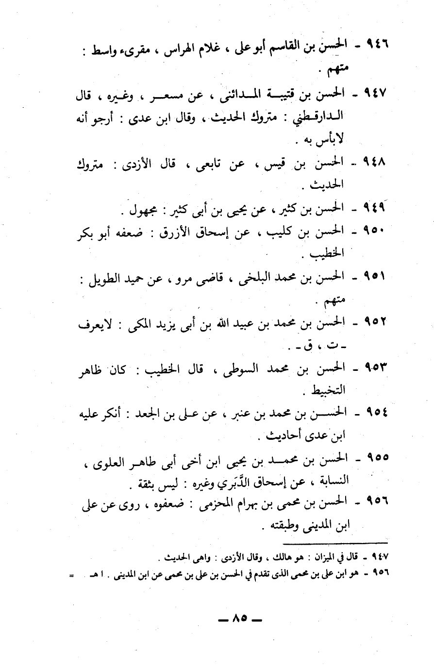 956 - الحسن بن محمي بن بهرام المحزمي: ضعفوه، روى عن علي بن المديني وطبقته.