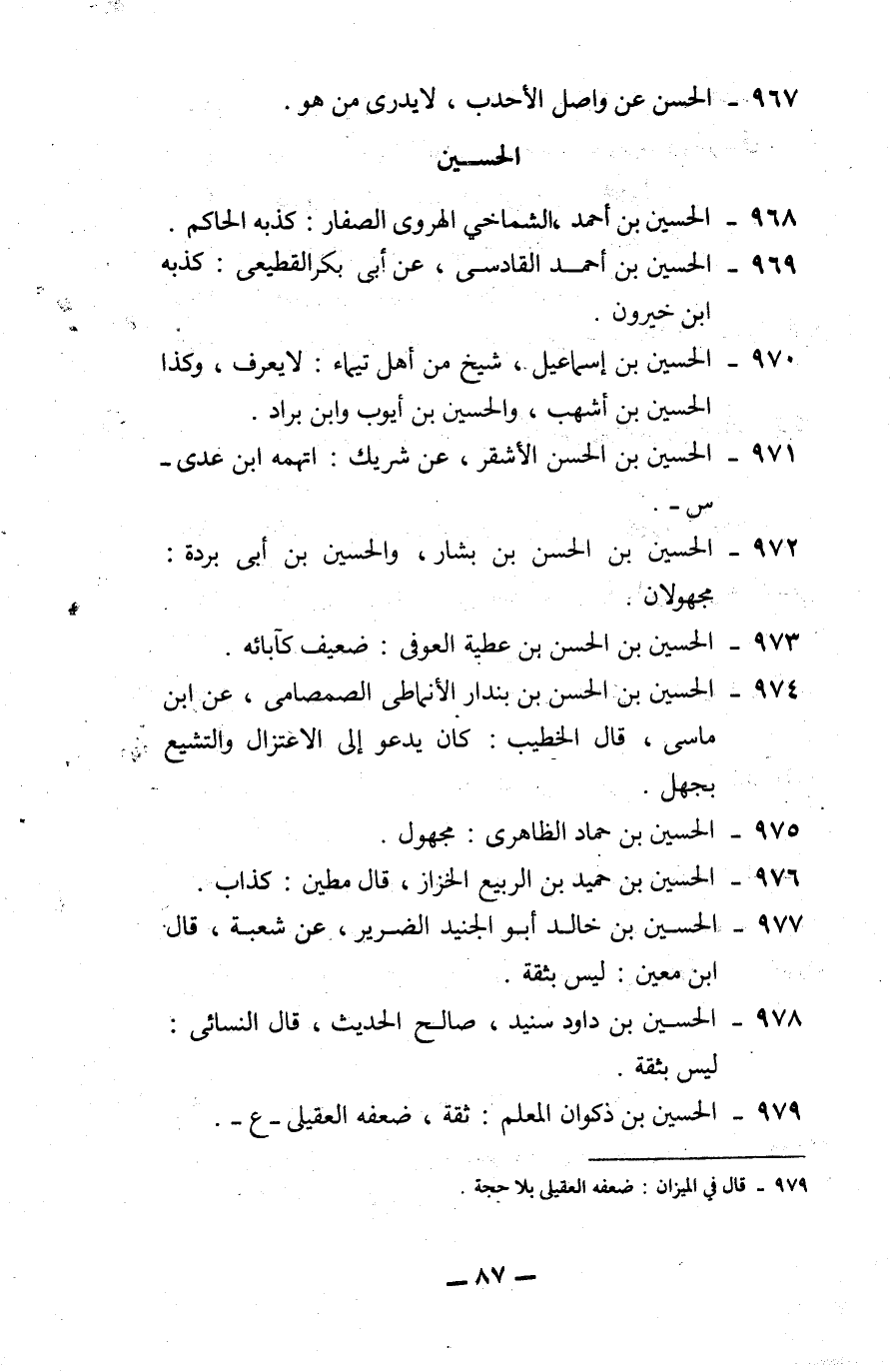 979 - الحسين بن ذكوان المعلم: ثقة، ضعفه العقيلي. -ع-