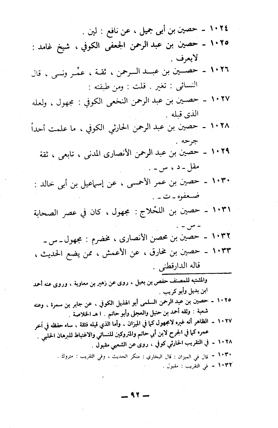 1025 - حصين بن عبد الرحمن الجعفي الكوفي: شيخ غامد، لا يعرف.