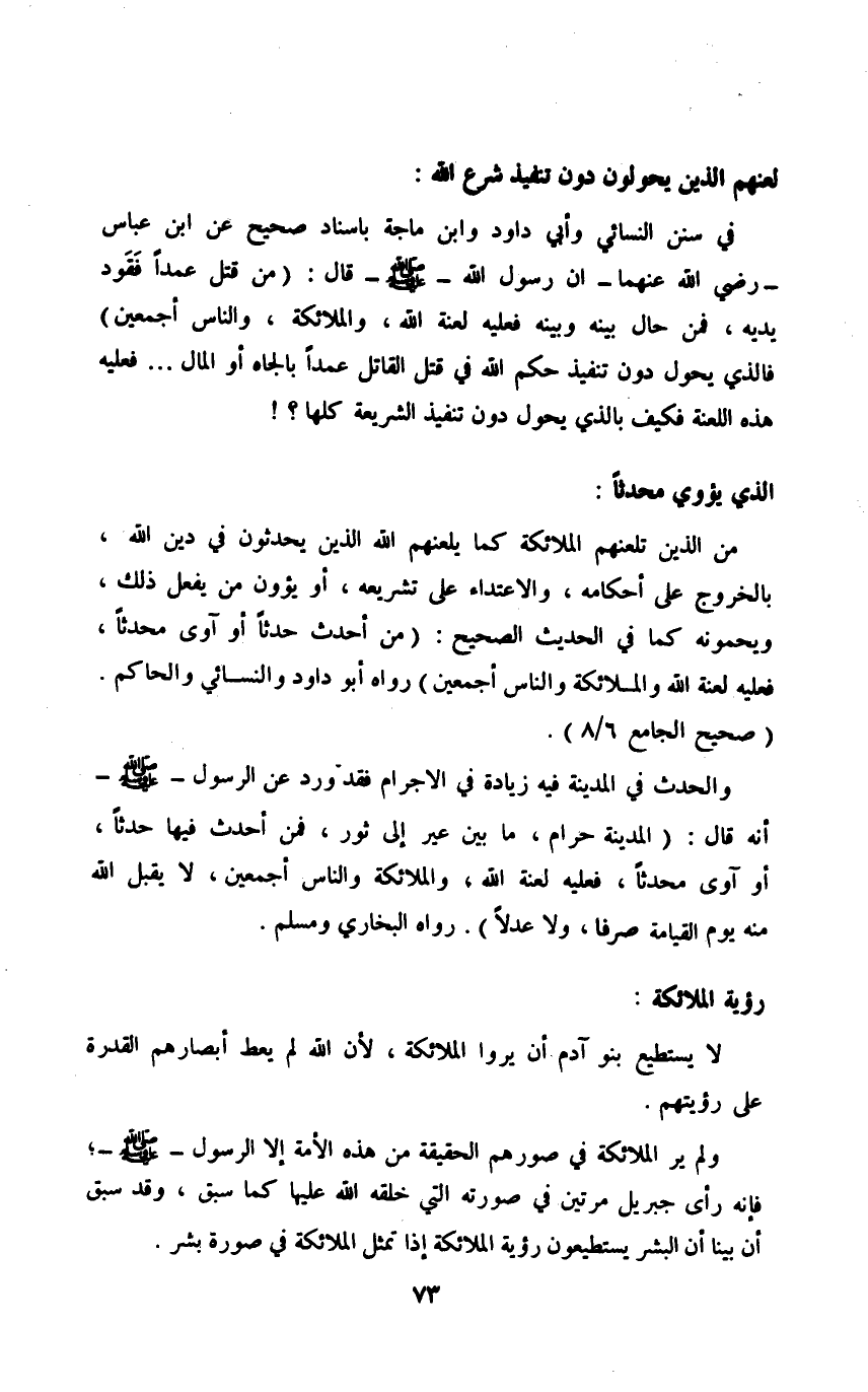 من الذين تلعنهم الملائكة كما يلعنهم الله الذين يحدثون في دين الله، بالخروج على أحكامه، والاعتداء على تشريعه، أو يؤوون من يفعل ذلك، ويحمونه، كما في الحديث الصحيح: (من أحدث حدثاً أو آوى محدثاً، فعليه لعنة الله، والملائكة، والناس أجمعين) (¬2) .