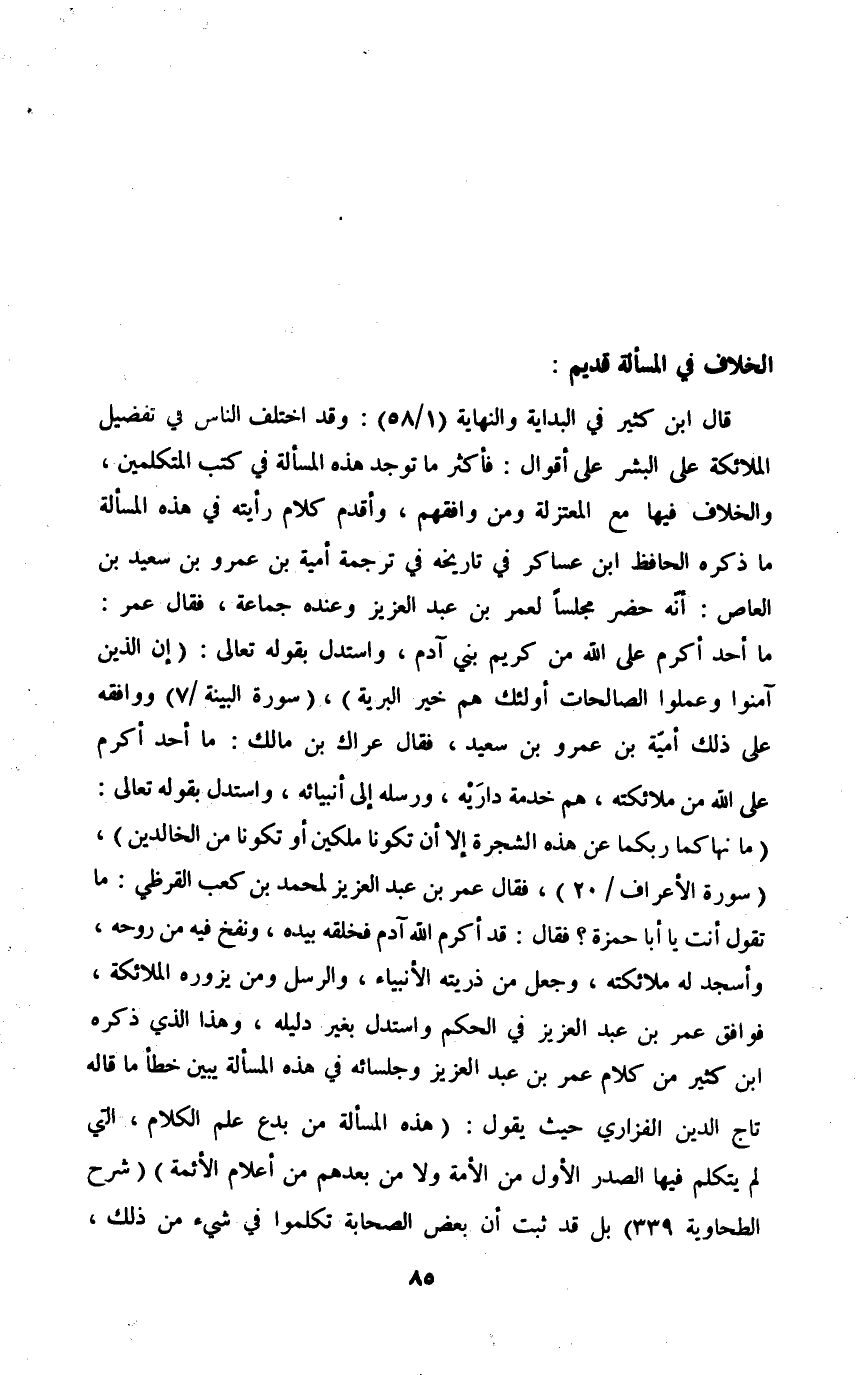 الفصل الخامس المفاضلة بين الملائكة وبني البشر