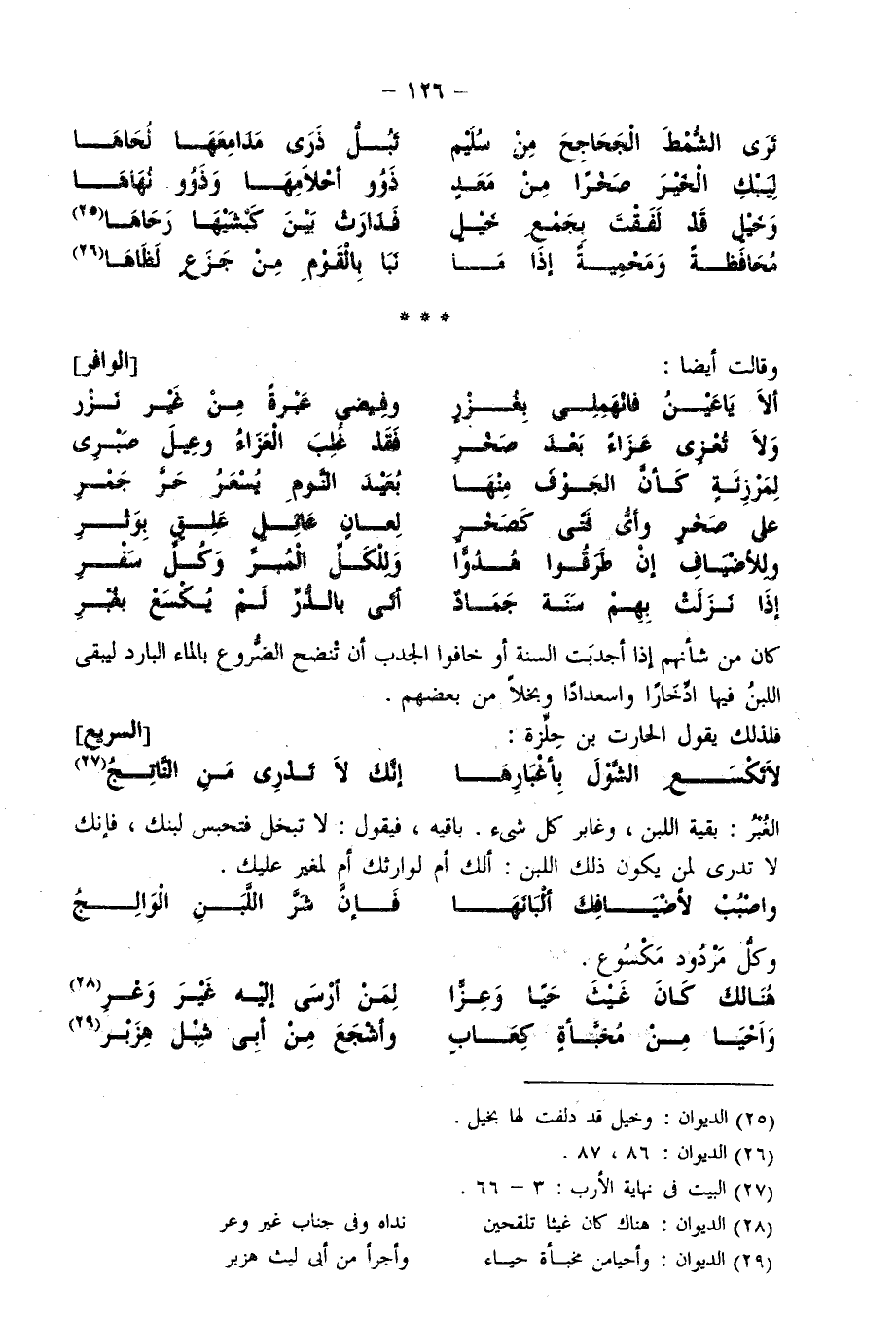 كان من شأنهم، إذا أجدبت السنة أو خافوا الجدب، أن تنضح الضروع بالماء البارد ليبقى اللبن فيها ادخاراً واستعداداً وبخلاً من بعضهم. فلذلك يقول الحارث ابن حلزة: السريع