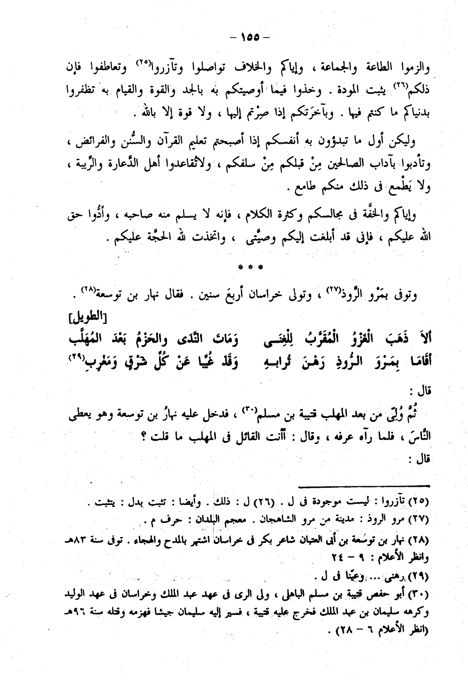 ولما حضرت الوفاة عمر بن هبيرة جزع وجعل يقول: لله در البغلات المسرجات الواقفات بأبواب السلطان. والله لوددت أني كنت راعي إبل مئة لرجل سيء الملكة.