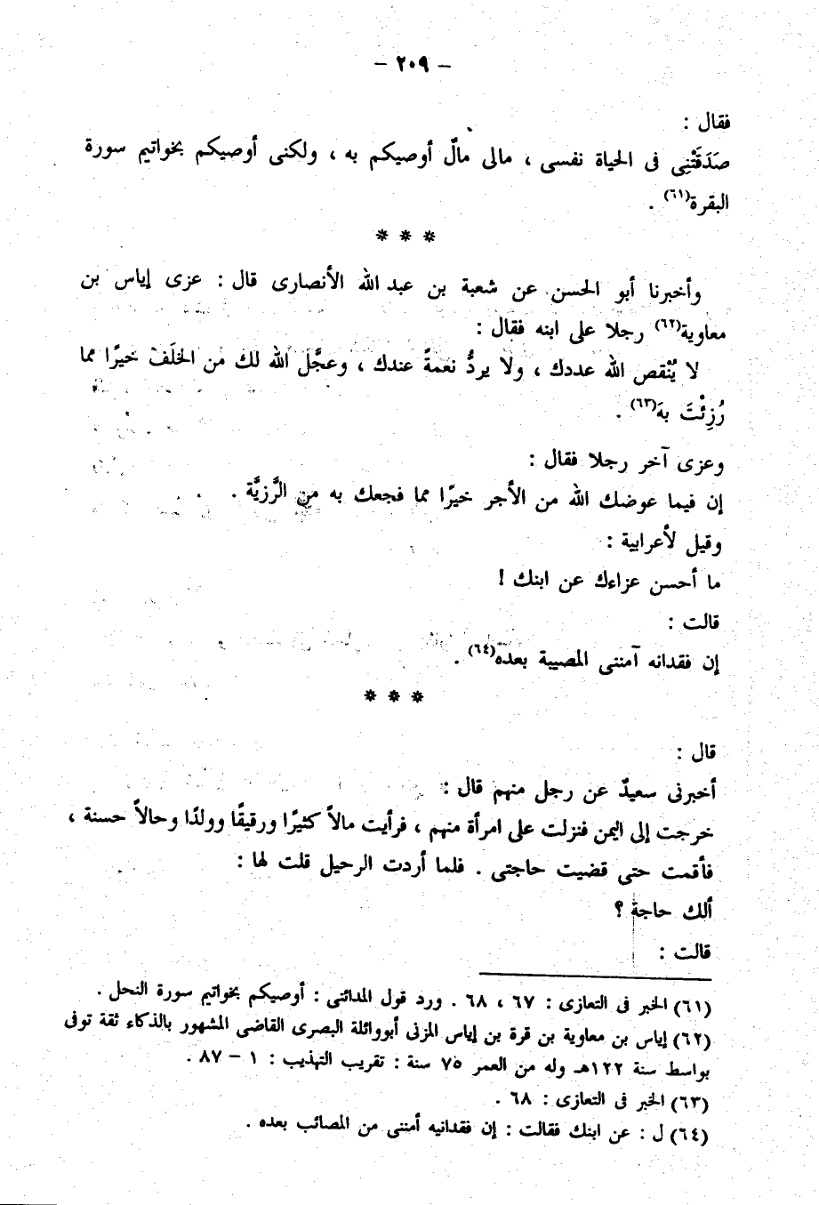 وتحدث المدائني عن إسحاق بن أيوب عن مطير، مولى يزيد قال: كتب الوليد بن عبد الملك إلى الحجاج يعزيه عن أخيه محمد بن يوسف فكتب إليه الحجاج: ما التقيت أنا ومحمد بن يوسف مذ كذا وكذا عاماً، وما غاب عني غيبة أنا، لطول اللقاء فيها أرجى من غيبته هذه في دار لا نفترق فيها.
