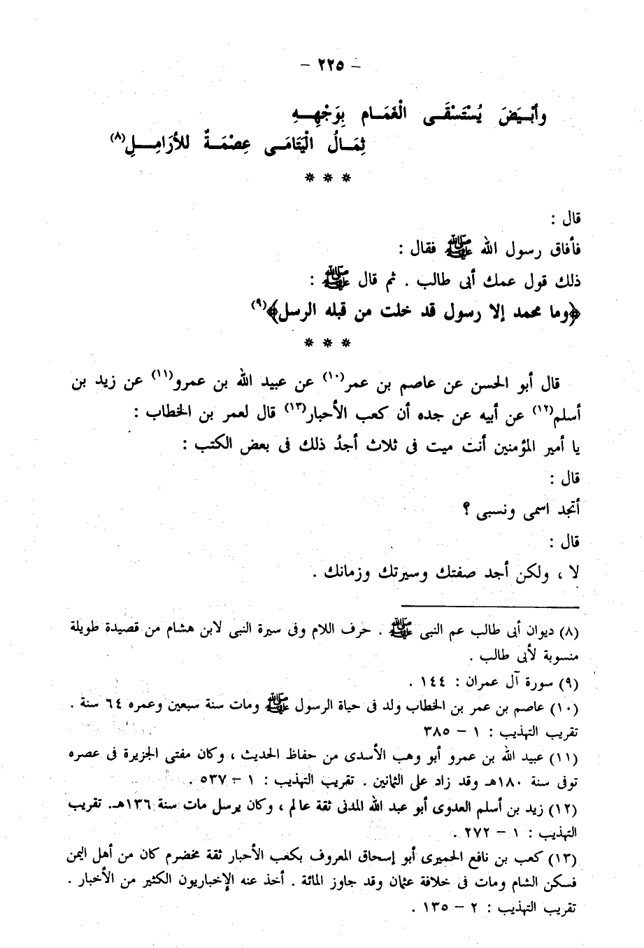 قال: وكان عبد العزيز بن الوليد ينزل أسيساً فقدم على أبيه بدمشق غلام للوليد فقال الوليد لابنه عبد العزيز: يا بني، ارجع إلى منزلك. قال: