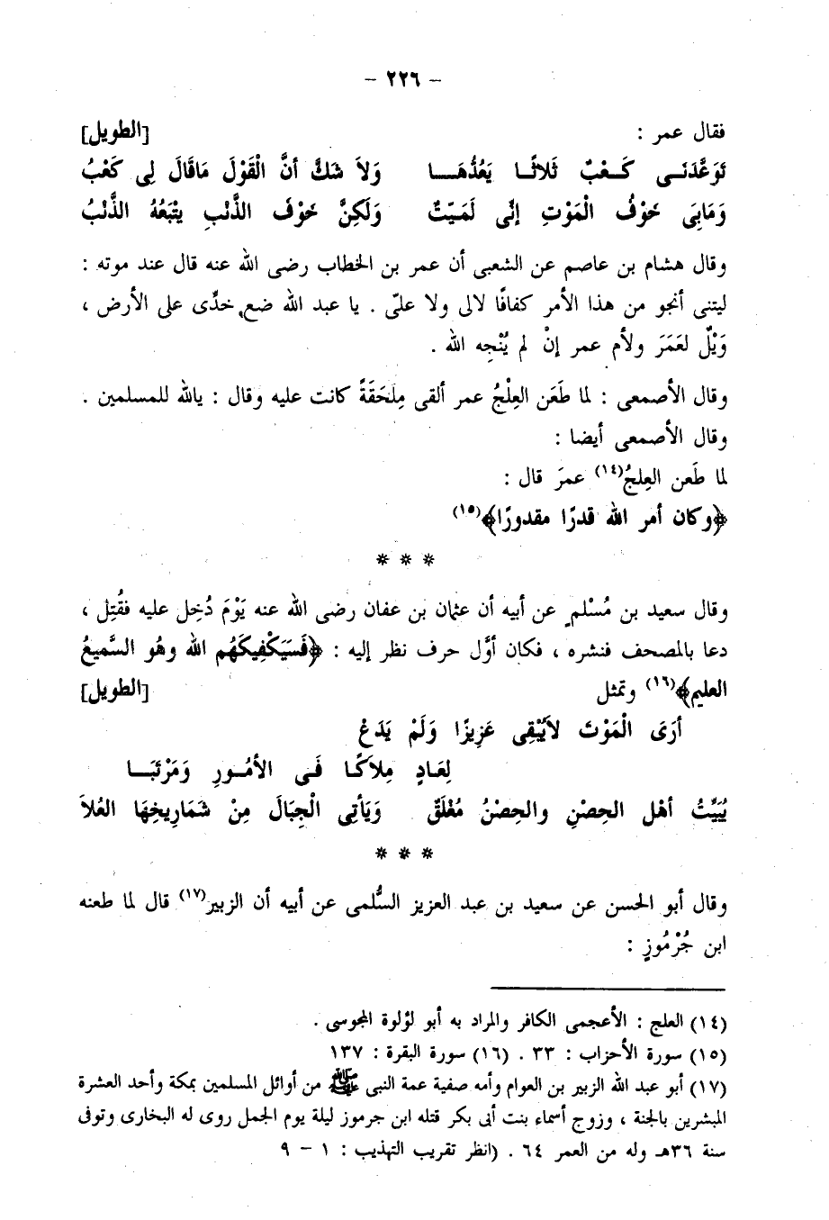 أبيت الليلة ثم أغدو. قال عزمت عليك إلا رجعت. فرجع ولم يدعه يبيت قال أبو عبيدة عن أبي عمرو بن العلاء: إن رجلاً من أهل البصرة أيام الطاعون الجارف لما رآه قد كثر أراد الهرب، فعمد إلى حمار له فجعل عليه متاعه، وغلام له يناوله جهازه، والغلام يرتجز: مشطور الرجز