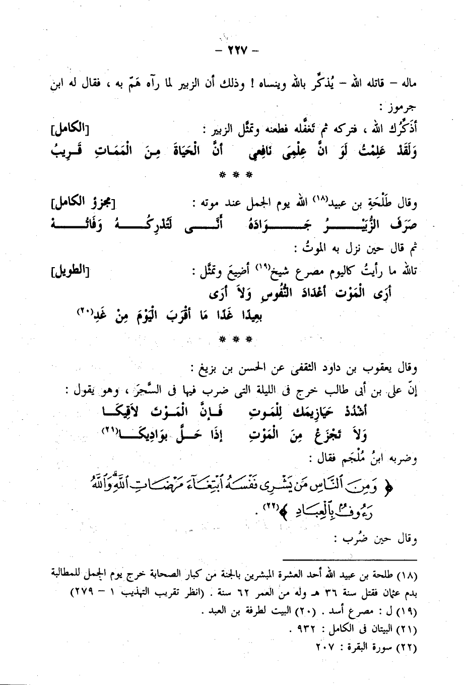 وقال: أبو محمد الناجي عن الحسن: إن أبا بكر، رحمه الله، سمع عائشة رضي الله عنها وهو في سكرات الموت، وهي تقول: الطويل