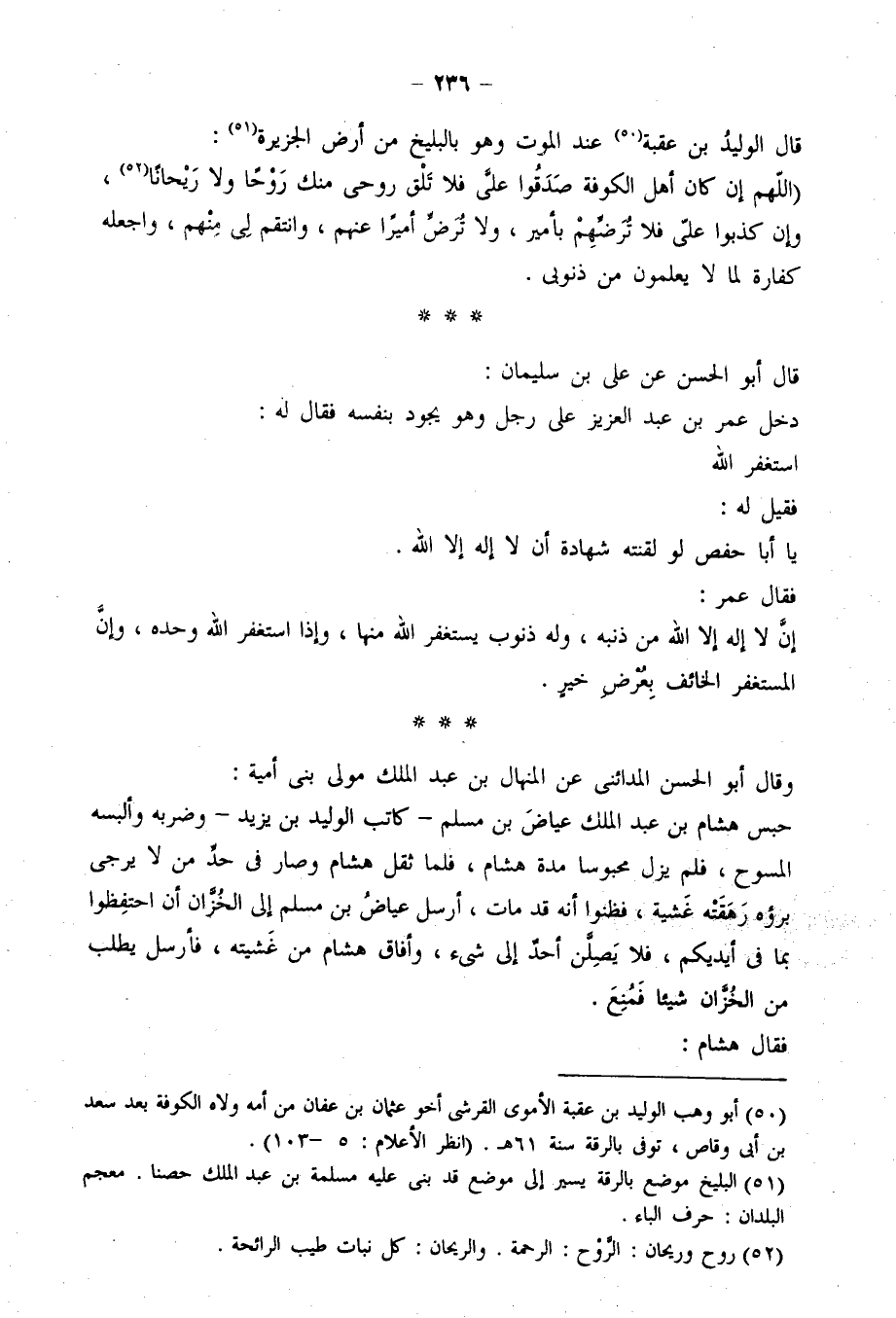 وقال يعقوب بن عوف بن عبد الملك بن نوفل: لما نزل بالمغيرة بن شعبة الموت قال: اللهم، هذه يدي بايعت بها نبيك صلى الله عليه وسلم، وجاهدت في سبيلك، فاغفر لي ما يعلمون من ذنوبي وما لا يعلمون.