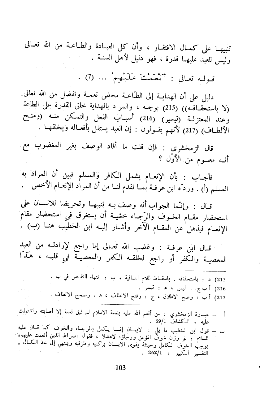 فأجاب: بأن الإنعام يشمل الكافر والمسلم فبين أن المراد به المسلم. وردّه ابن عرفة بما تقدم لنا من أن المراد الإنعام الأخص.