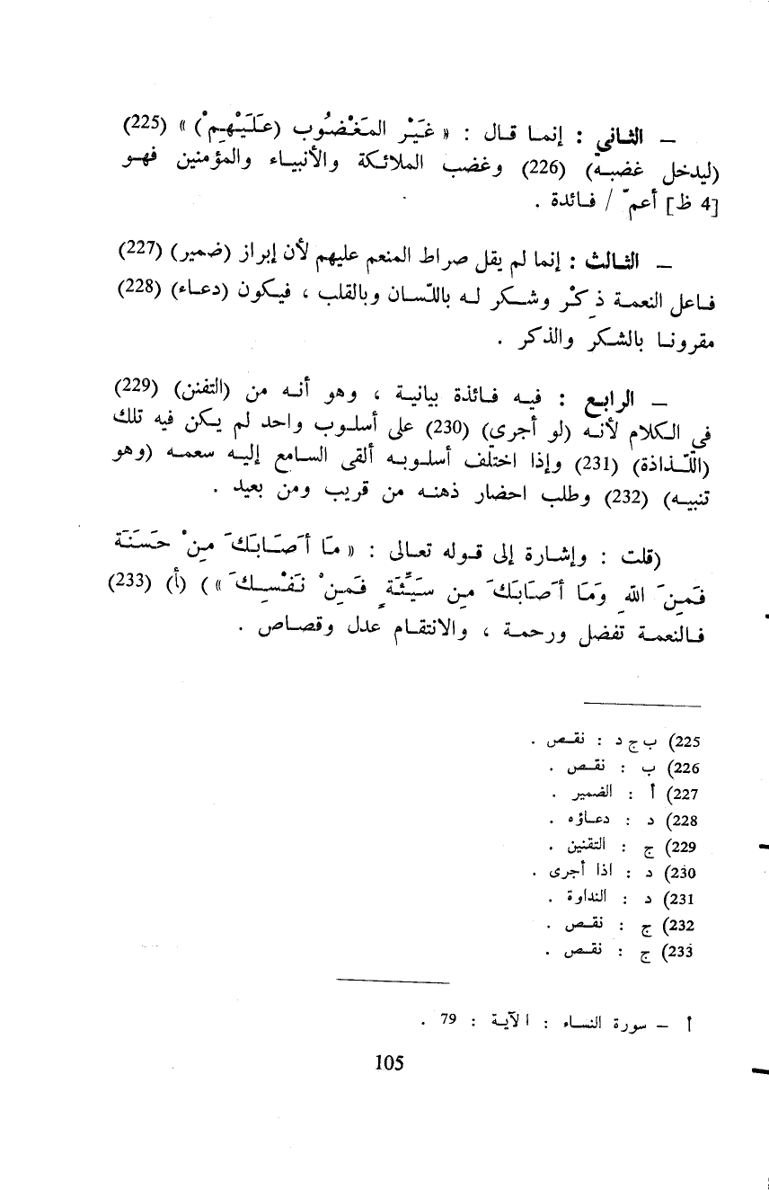- الثالث: إنما لم يقل صراط المنعم عليهم لأن إبراز (ضمير) فاعل النعمة ذِكْر وشكر له باللّسان وبالقلب، فيكون (دعاء) مقرونا بالشكر والذكر.