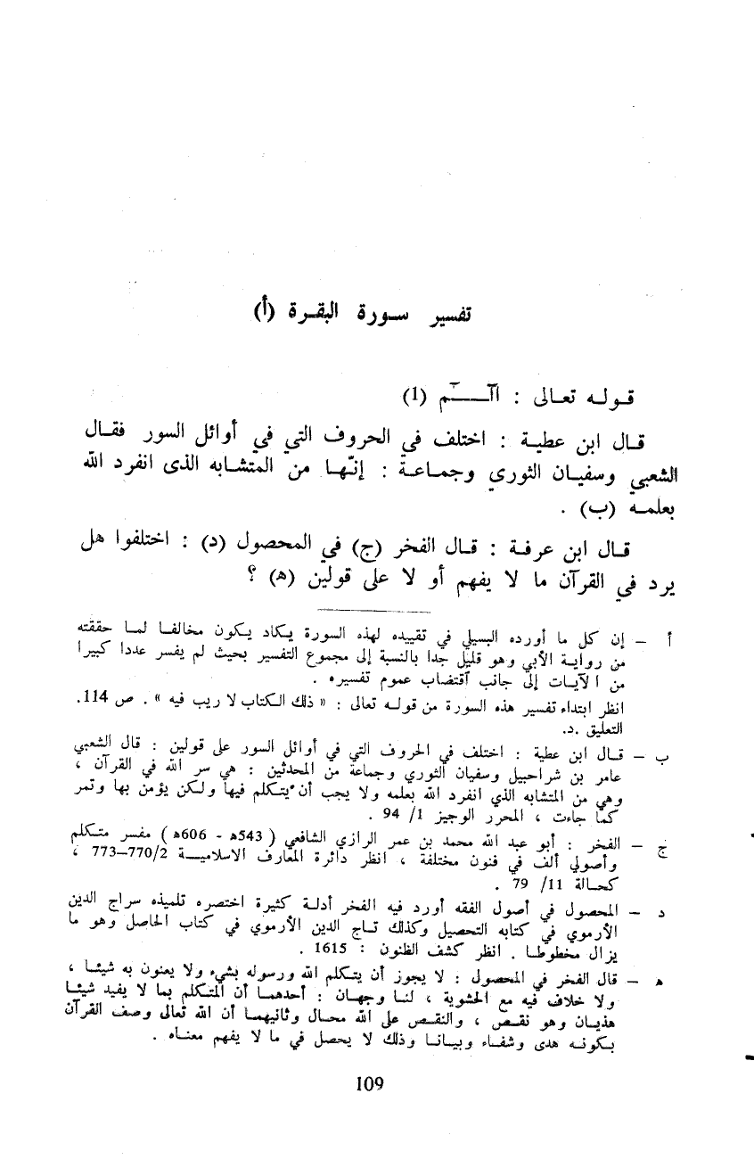 قال ابن عطية: اختلف في الحروف التي في أوائل السور فقال الشعبي وسفيان الثوري وجماعة: إنّها من المتشابه الذى انفرد الله بعلمه.