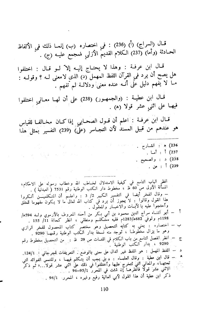 قال ابن عرفة: وهذا لا يحتاج إليه إلاّ لو قال: اختلفوا هل يصح أن يرد في القرآن اللفظ المهمل الذي لا معنى له؟ وقوله: ما لا يفهم دليل على أنه عنده معنى ودلالة لم تفهم.