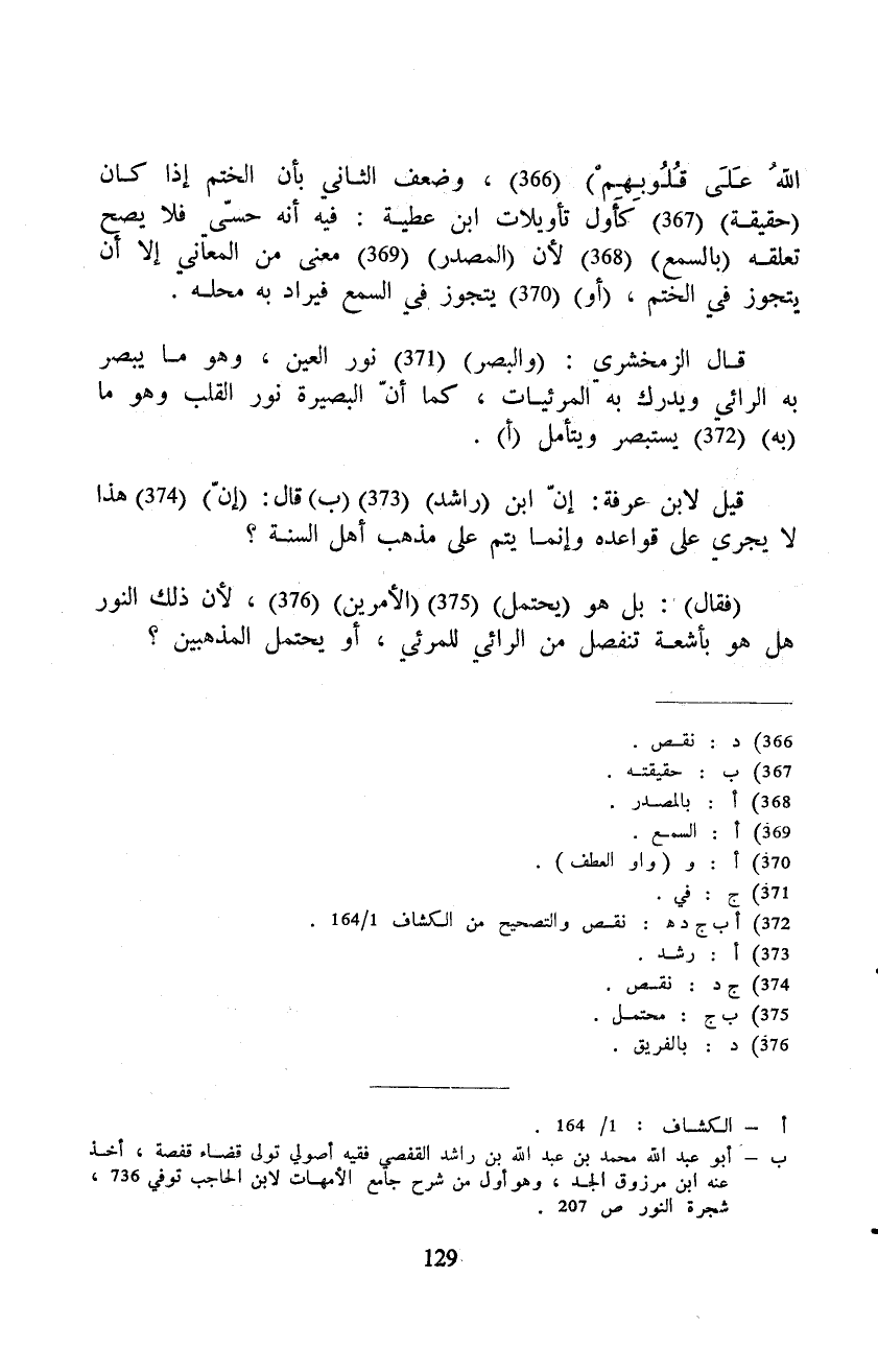 قال ابن عرفة: هكذا قرره بعضهم. ويرد عليه (أنه كان يكون الأوْلى تقدير هذه الآية على ما قبلها، لأنها سبب فيه وكان يمشي لنا فيه) إن كان تقرير المناسبة بأنّ امتناع تأثير الفعل في المفعول إما (لخلل) في الفاعل أو المَانِعِ في القابل فقد يضرب بالسيف شجاع قوي ويكون على المضروب مصفّح من حديد فلا يؤثر فيه شيئا، فأخبر هنا أن (تعذر) تأثير الإنذار فيهم لا