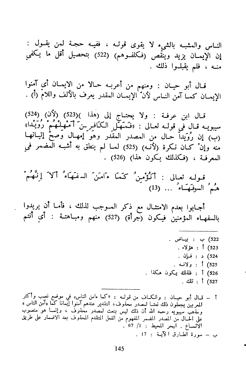 قوله تعالى: {أَنُؤْمِنُ كَمَآءَامَنَ السفهآء ألا إِنَّهُمْ هُمُ السفهآء ... }