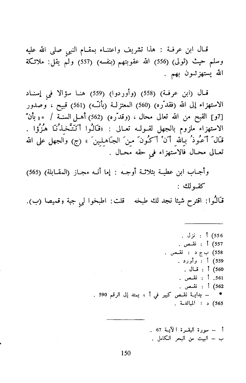 وأجاب ابن عطية بثلاثة أوجه: إما أنه مجاز (المقابلة) كقولك: