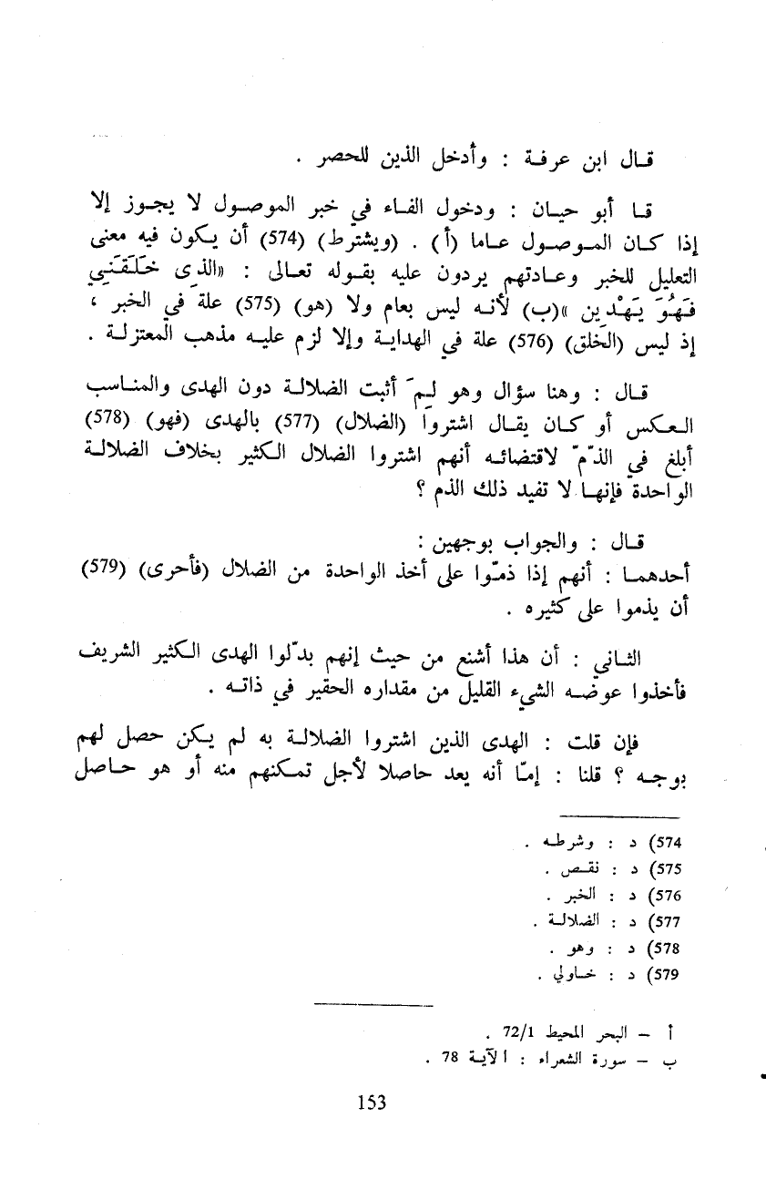 قال: وهنا سؤال وهو لِمَ أثبت الضلالة دون الهدى والمناسب العكس أو كان يقال اشتروا (الضلال) بالهدى (فهو) أبلغ في الذّمّ لاقتضائه أنهم اشتروا الضلال الكثير بخلاف الضلالة الواحدة فإنها لا تفيد ذلك الذم؟