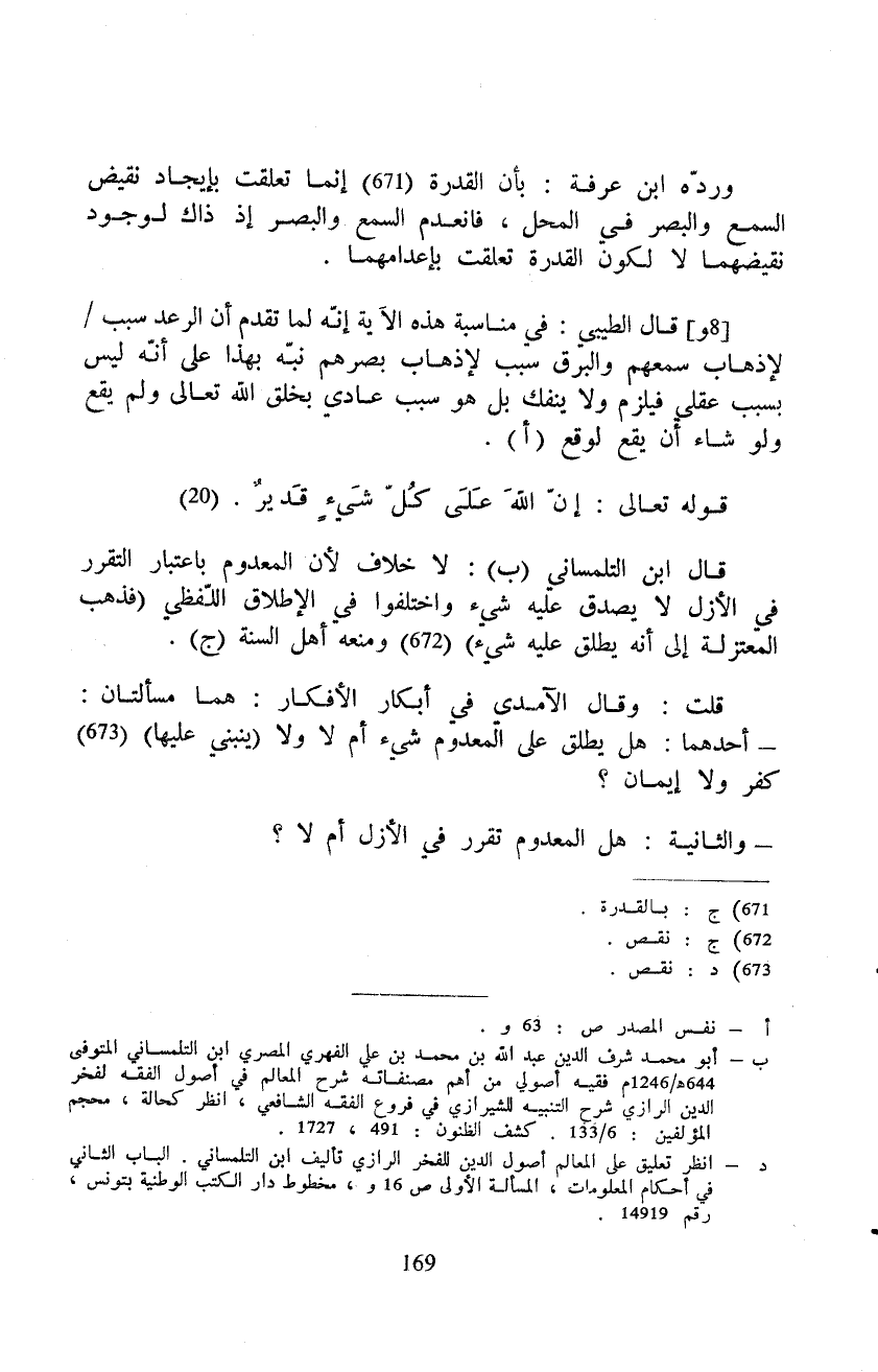 وردّه ابن عرفة: بأن القدرة إنما تعلقت بإيجاد نقيض السمع والبصر في المحل، فانعدم السمع والبصر إذ ذاك لوجود نقيضهما لا لكون القدرة تعلقت بإعدامهما.