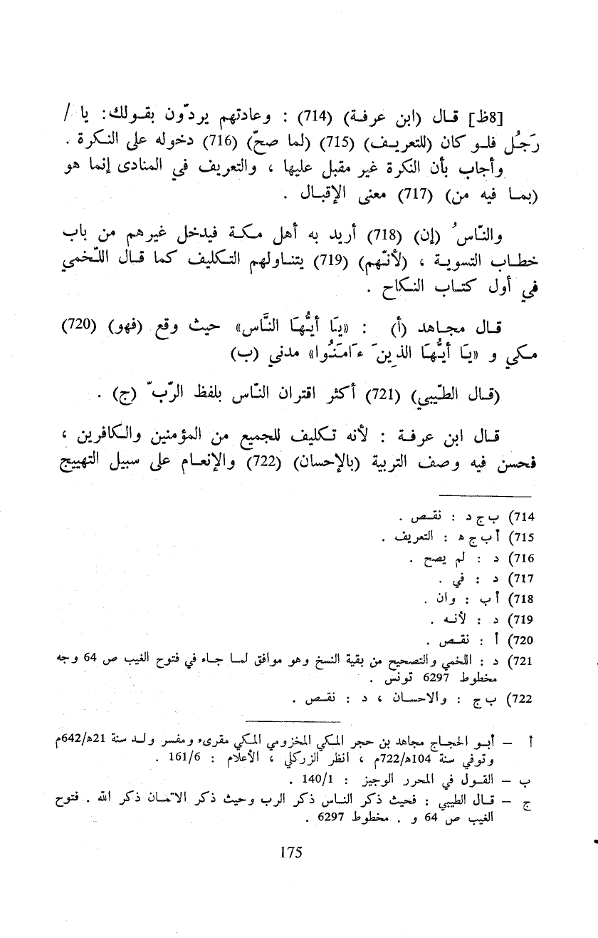 والنّاسُ (إن) أريد به أهل مكة فيدخل غيرهم من باب خطاب التسوية، (لأنّهم) يتناولهم التكليف كما قال اللّخمي في أول كتاب النكاح.