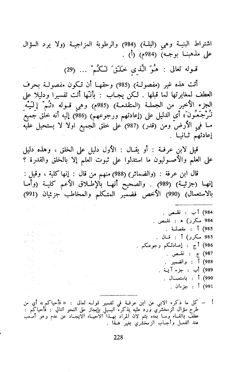 قيل لابن عرفة: أو يقال: الأول دليل على الخلق، وهذه دليل على العلم والأصوليون ما استدلوا على ثبوت العلم إلا بالخلق والقدرة؟