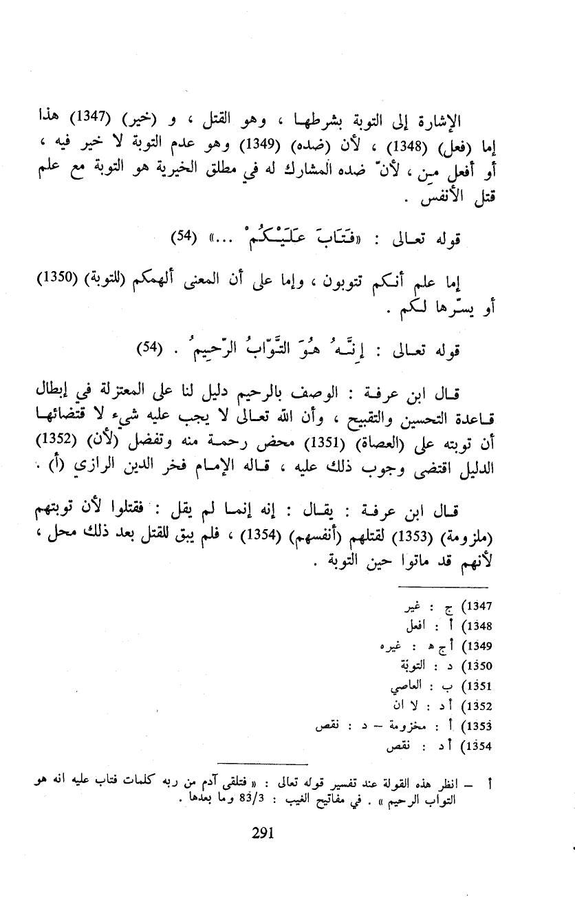 قال ابن عرفة: يقال: إنه إنما لم يقل: فقتلوا لأن توبتهم (ملزومة) لقتلهم (أنفسهم) ، فلا يبق للقتل بعد ذلك محل، لأنهم قد ماتوا حين التوبة.
