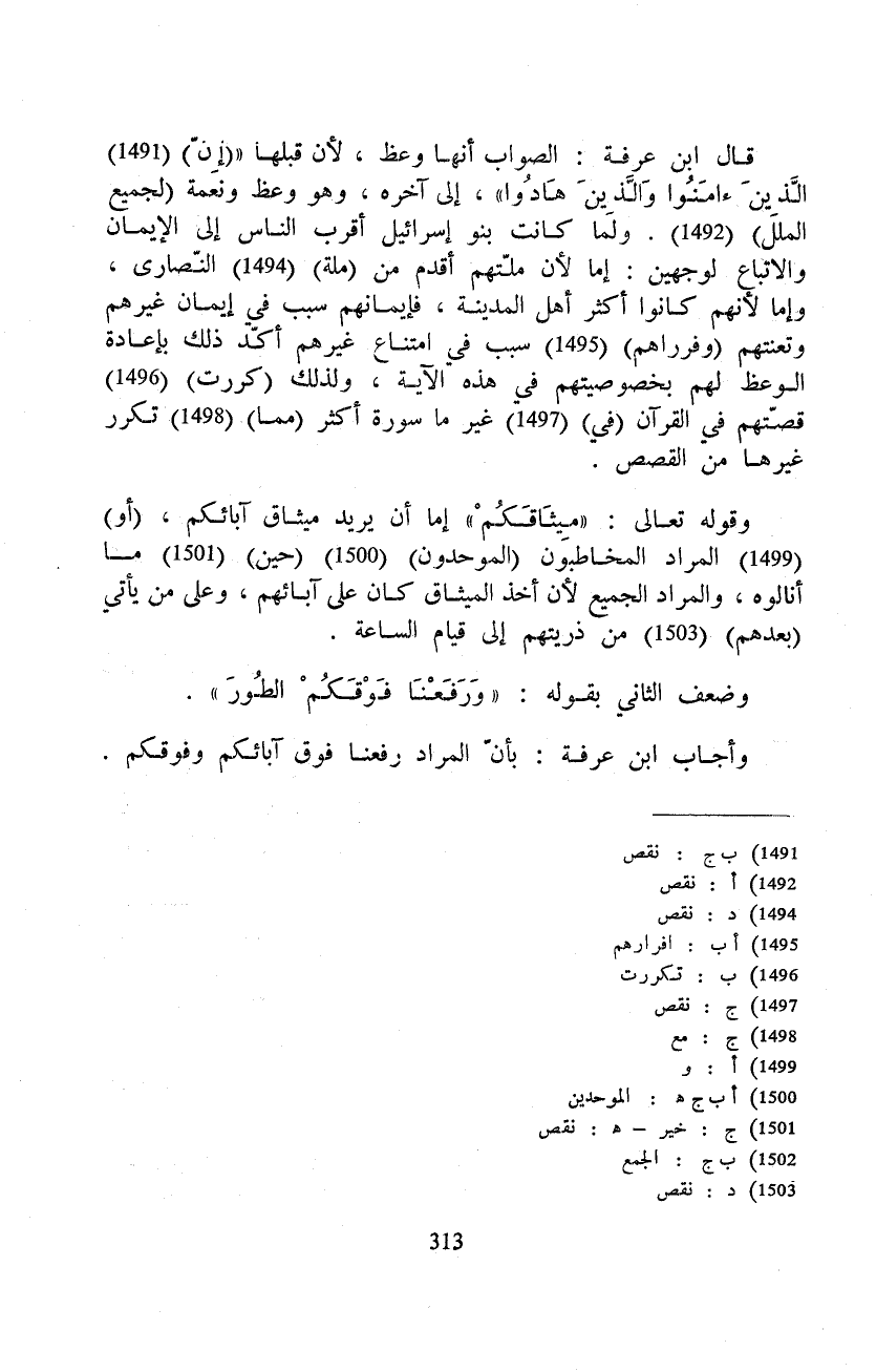 وأجاب ابن عرفة: بأنّ المراد رفعنا فوق آبائكم وفوقكم.