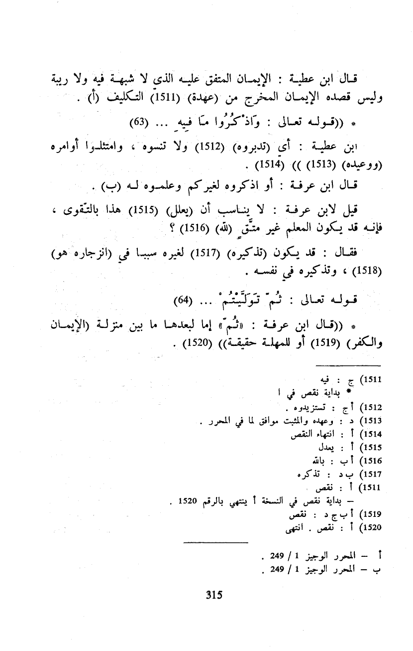 ((قال ابن عرفة: «ثُمَّ» إما لبعدها ما بين منزلة (الإيمان والكفر) أو للمهلة حقيقة)) .
