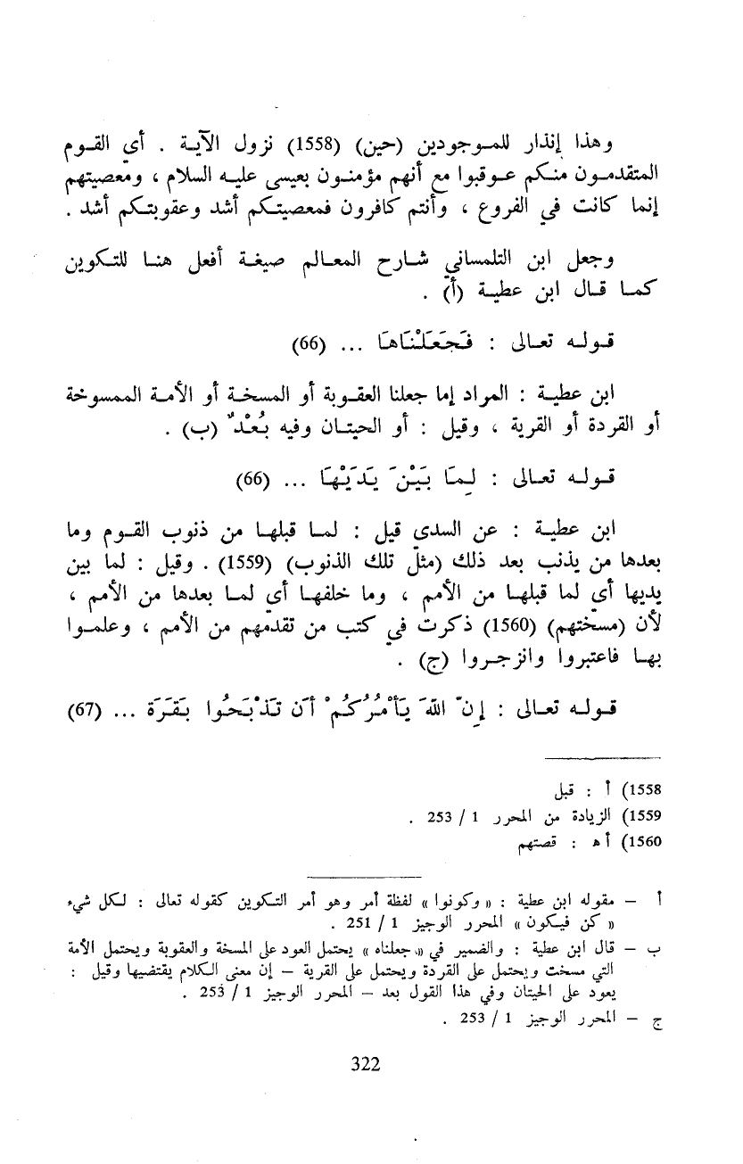 ابن عطية: المراد إما جعلنا العقوبة أو المسخة أو الأمة الممسوخة أو القردة أو القرية، وقيل: أو الحيتان وفيه بُعْدٌ.