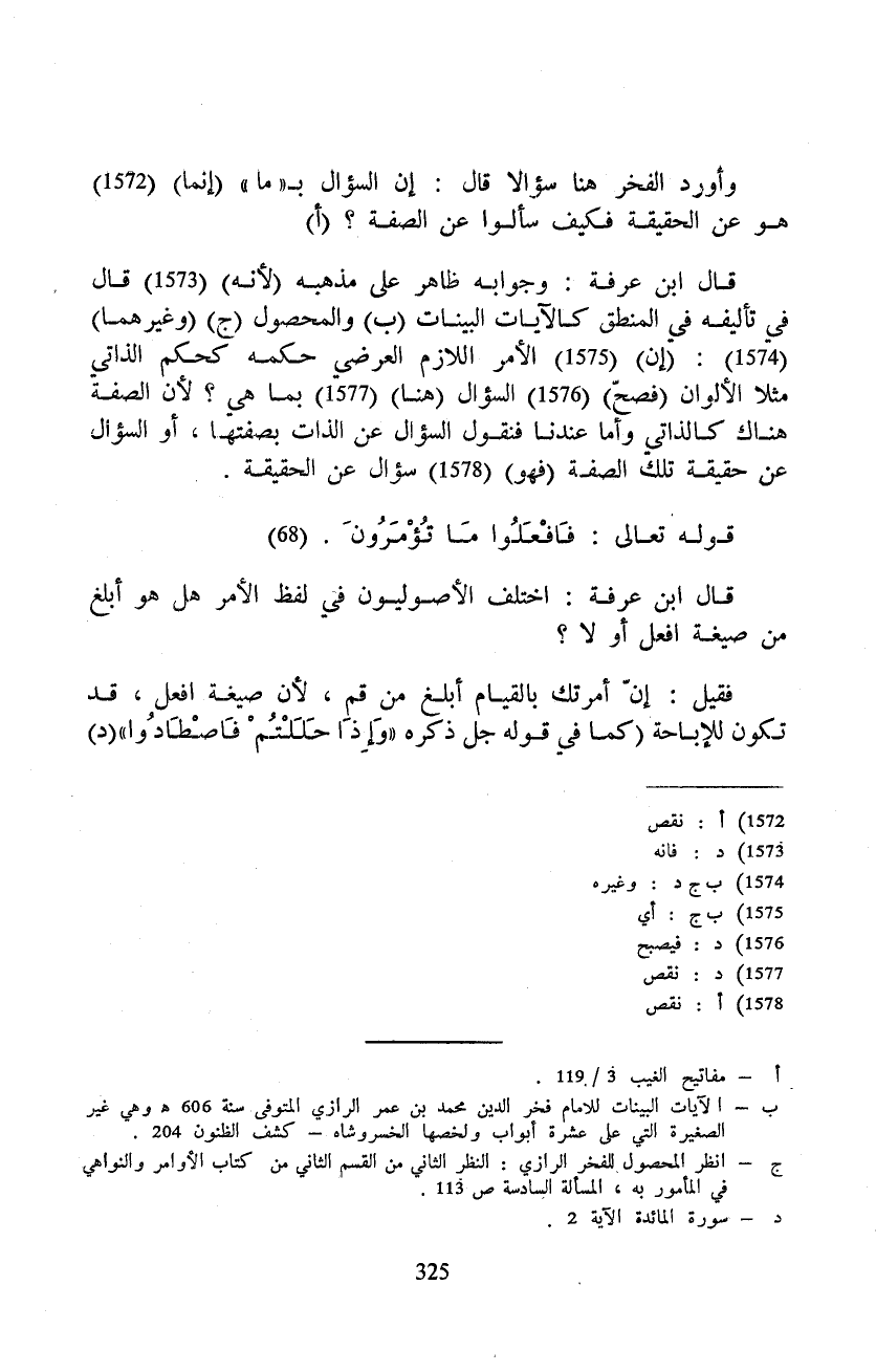 وأورد الفخر هنا سؤالا قال: إن السؤال ب «ما» (إنما) هو عن الحقيقة فكيف سألوا عن الصفة؟