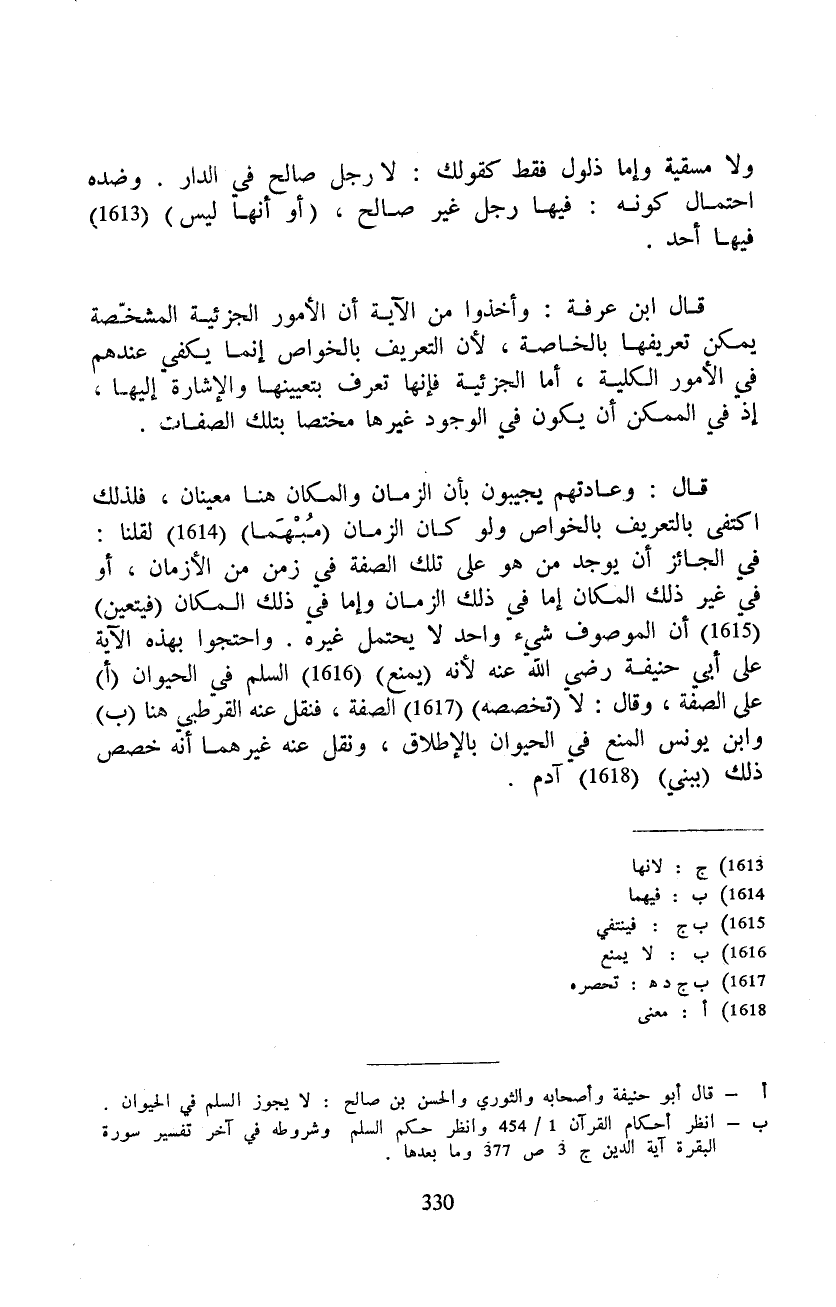 قال ابن عرفة: وأخذوا من الآية أن الأمور الجزئية المشخّصة يمكن تعريفها بالخاصة، لأن التعريف بالخواص إنما يكفي عندهم في الأمور الكلية، أما الجزئية فإنها تعرف بتعيينها والإشارة إليها، إذ في الممكن أن يكون في الوجود غيرها مختصا بتلك الصفات.