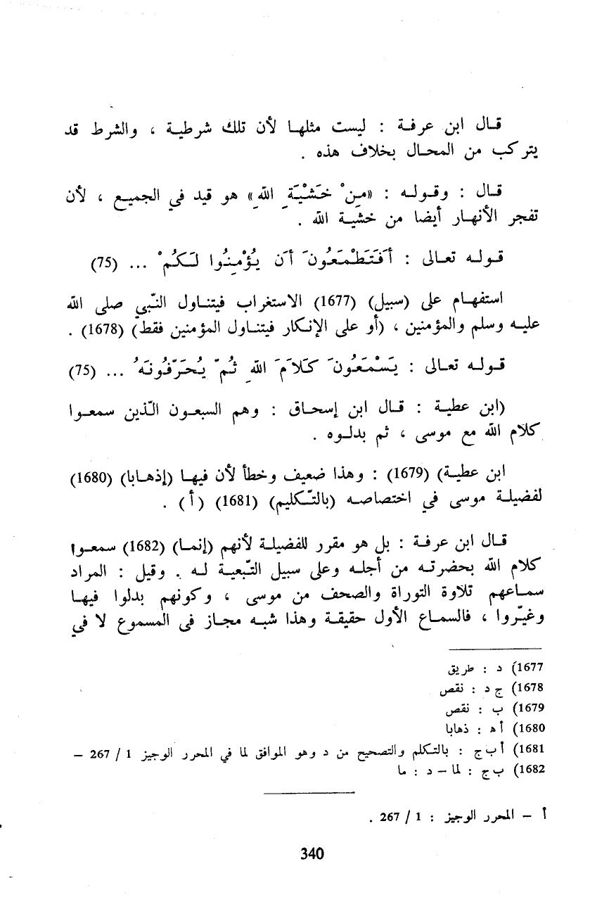 قال ابن عرفة: بل هو مقرر للفضيلة لأنهم (إنما) سمعوا كلام الله بحضرته من أجله وعلى سبيل التّبعية له. وقيل: المراد سماعهم تلاوة التوراة والصحف من موسى، وكونهم بدلوا فيها وغيّروا، فالسماع الأول حقيقة وهذا شبه مجاز في المسموع لا في