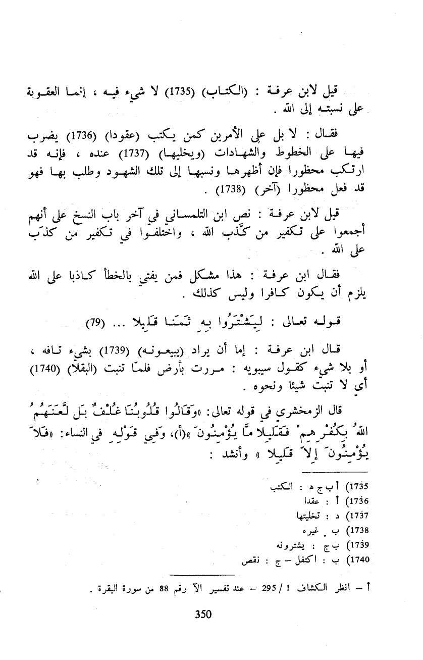 قيل لابن عرفة: (الكتاب) لا شيء فيه، إنما العقوبة على نسبته إلى الله.