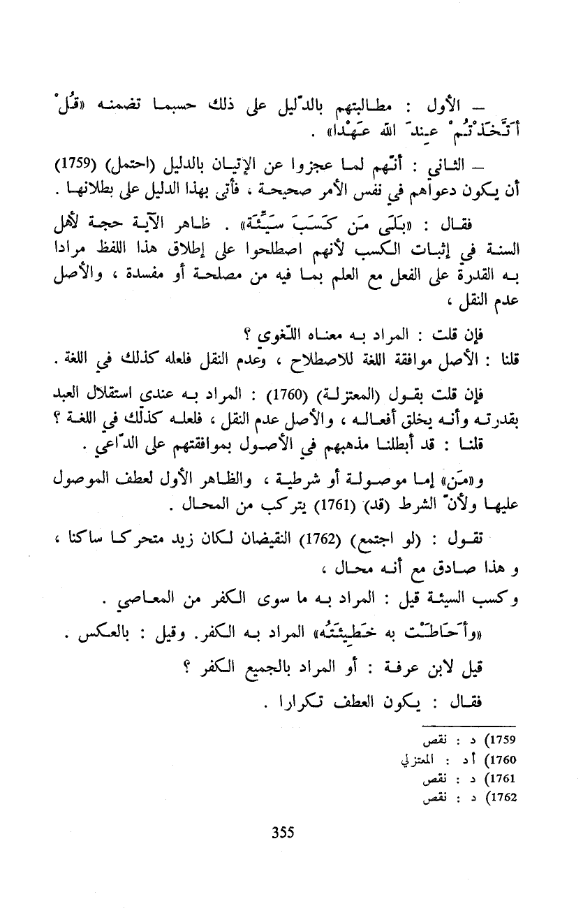 فإن قلت بقول (المعتزلة) : المراد به عندي استقلال العبد بقدرته وأنه يخلق أفعاله، والأصل عدم النقل، فلعله كذلك في اللغة؟