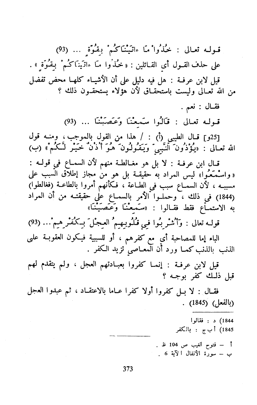 قوله تعالى: {وَأُشْرِبُواْ فِي قُلُوبِهِمُ العجل بِكُفْرِهِمْ ... }