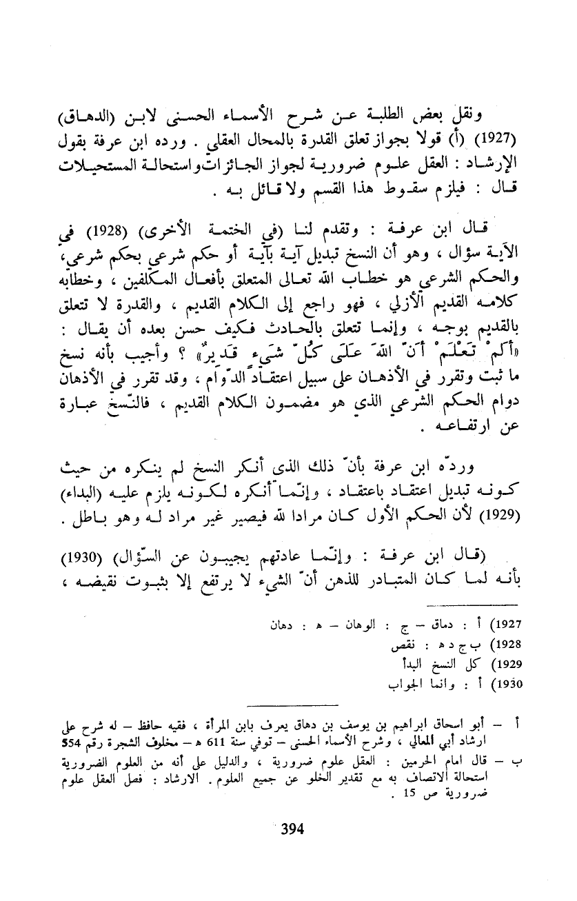 وردّه ابن عرفة بأنّ ذلك الذي أنكر النسخ لم ينكره من حيث كونه تبديل اعتقاد باعتقاد، وإنّما أنكره لكونه يلزم عليه (البداء) لأن الحكم الأول كان مرادا لله فيصير غير مراد له وهو باطل.