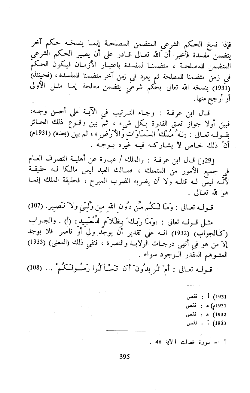 فإذا نسخ الحكم الشرعي المتضمن المصلحة إنما ينسخه حكم آخر يتضمن مفسدة فأخبر أن الله تعالى قادر على أن يصير الحكم الشرعي المتضمن للمصلحة، متضمنا لمفسدة باعتبار الأزمان فيكون الحكم في زمن متضمنا للمصلحة ثم يعود في زمن آخر متضمنا للمفسدة، (فحينئذ) ينسخه الله تعالى بحكم شرعي يتضمن مصلحة إما مثل الأولى أو أرجح منها.