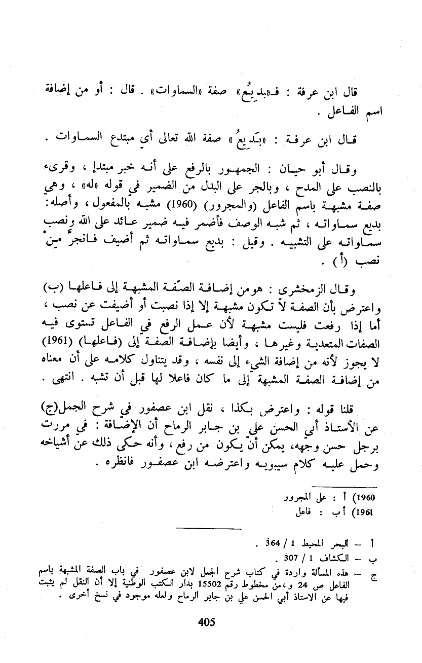قال ابن عرفة: ف «بدِيعُ» صفة «السماوات» . قال: أو من إضافة اسم الفاعل.