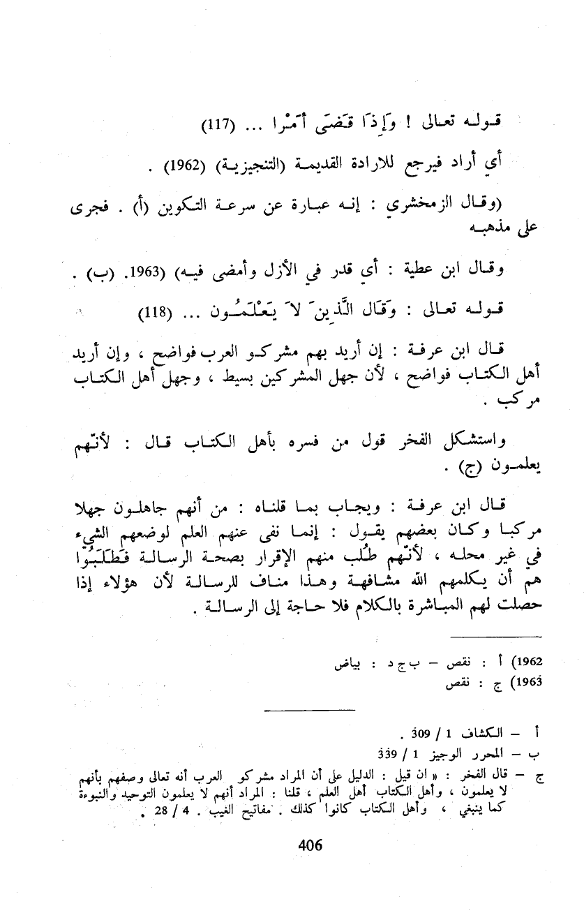 قال ابن عرفة: ويجاب بما قلناه: من أنهم جاهلون جهلا مركبا وكان بعضهم يقول: إنما نفى عنهم العلم لوضعهم الشيء في غير محله، لأنّهم طُلب منهم الإقرار بصحة الرسالة فَطَلَبُوا هم أن يكلمهم الله مشافهة وهذا مناف للرسالة لأن هؤلاء إذا حصلت لهم المباشرة بالكلام فلا حاجة إلى الرسالة.