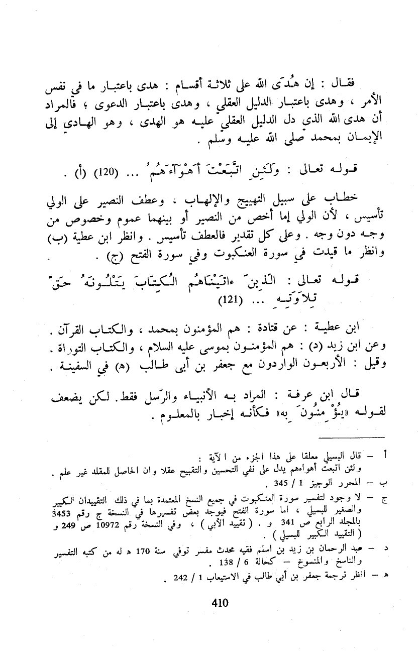 فقال: إن هُدَى الله على ثلاثة أقسام: هدى باعتبار ما في نفس الأمر، وهدى باعتبار الدليل العقلي، وهدى باعتبار الدعوى؛ فالمراد أن هدى الله الذي دل الدليل العقلي عليه هو الهدى، وهو الهادي إلى الإيمان بمحمد صَلَّى اللَّهُ عَلَيْهِ وَسَلَّم َ.