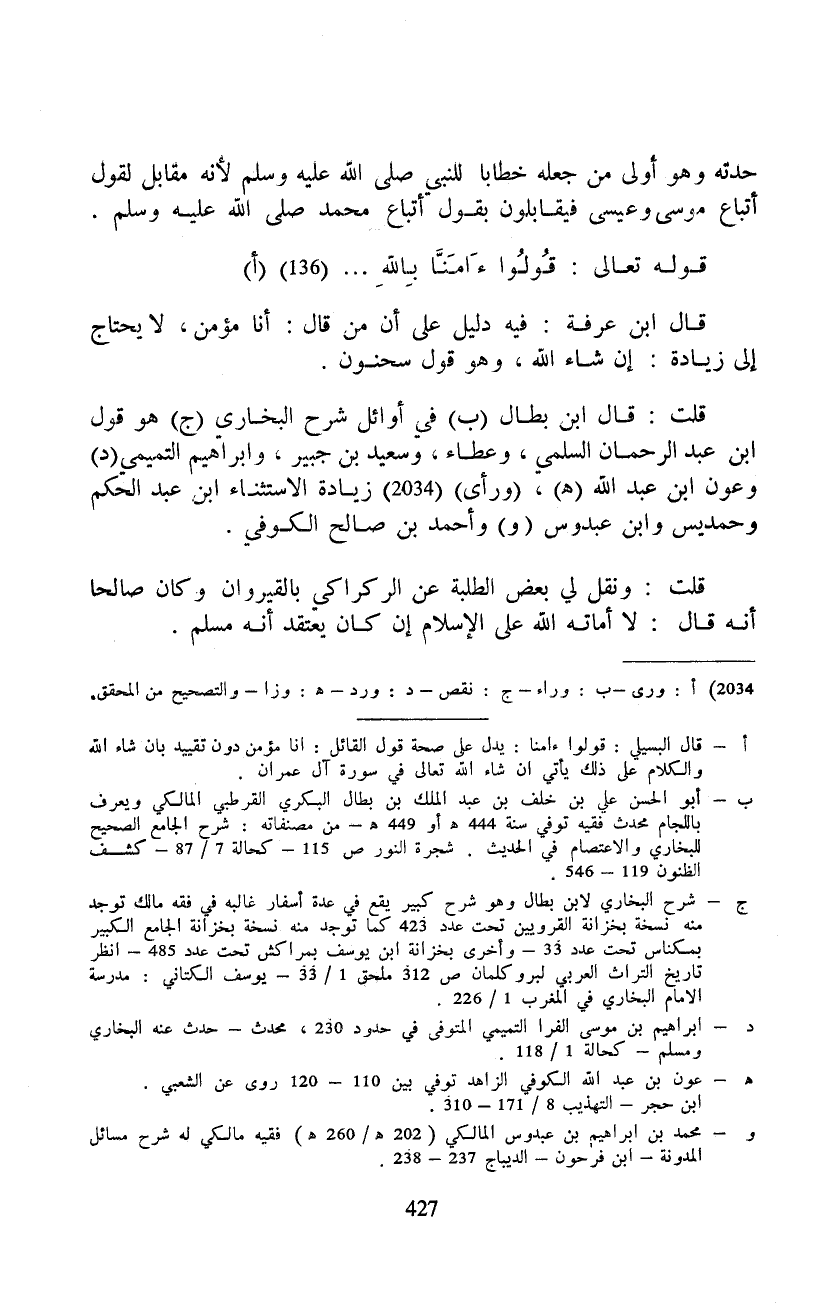 قال ابن عرفة: فيه دليل على أن من قال: أنا مؤمن، لا يحتاج إلى زيادة: إن شاء الله، وهو قول سحنون.