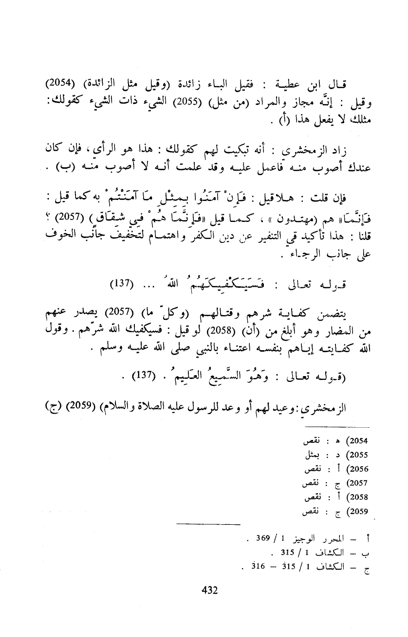 يتضمن كفاية شرهم وقتالهم (وكلّ ما) يصدر عنهم من المضار وهو أبلغ من (أن) لو قيل: فسيكفيك الله شرّهم. وقول الله كفايته إياهم بنفسه اعتناء بالنبي صَلَّى اللَّهُ عَلَيْهِ وَسَلَّم َ.