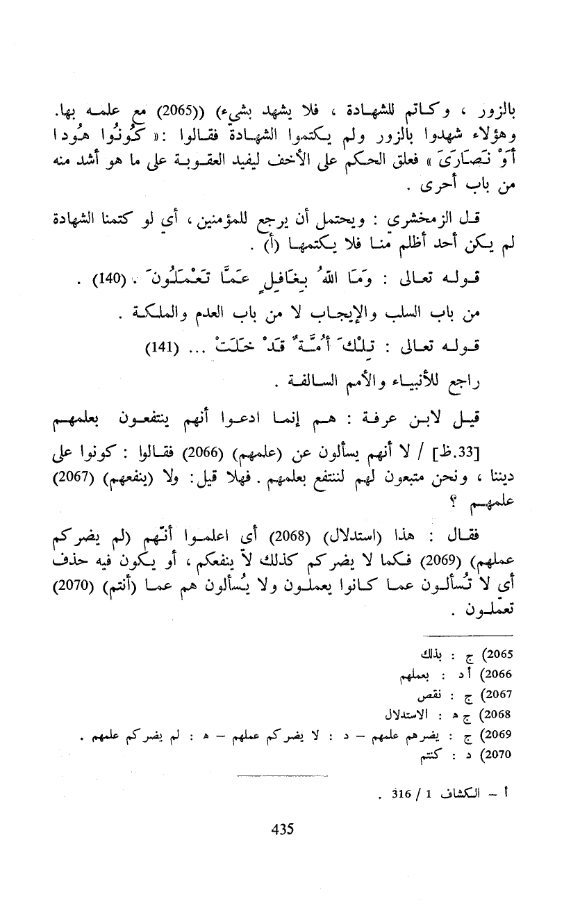 قيل لابن عرفة: هم إنما ادعوا أنهم ينتفعون بعلمهم / لا أنهم يسألون عن (علمهم) فقالوا: كونوا على ديننا، ونحن متبعون لهم لننتفع بعلمهم. فهلا قيل: ولا (ينفعهم) علمهم؟