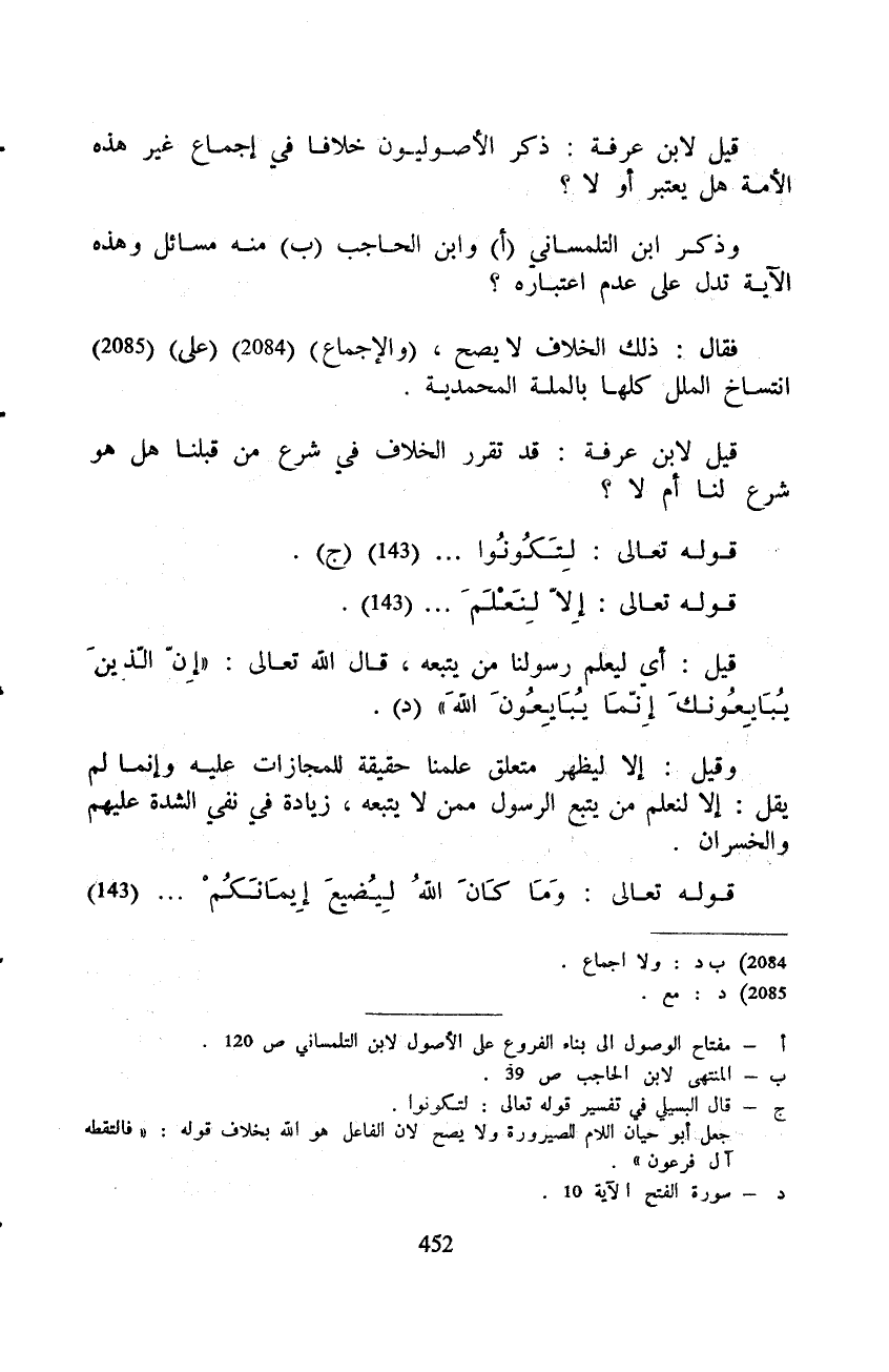 فقال: ذلك الخلاف لا يصح، (والإجماع) (على) انتساخ الملل كلها بالملة المحمدية.