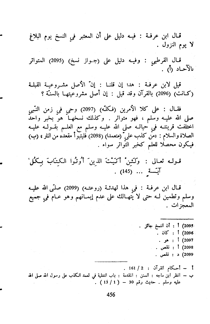 قال ابن عرفة: فيه دليل على أن المعتبر في النسخ يوم البلاغ لا يوم النزول.