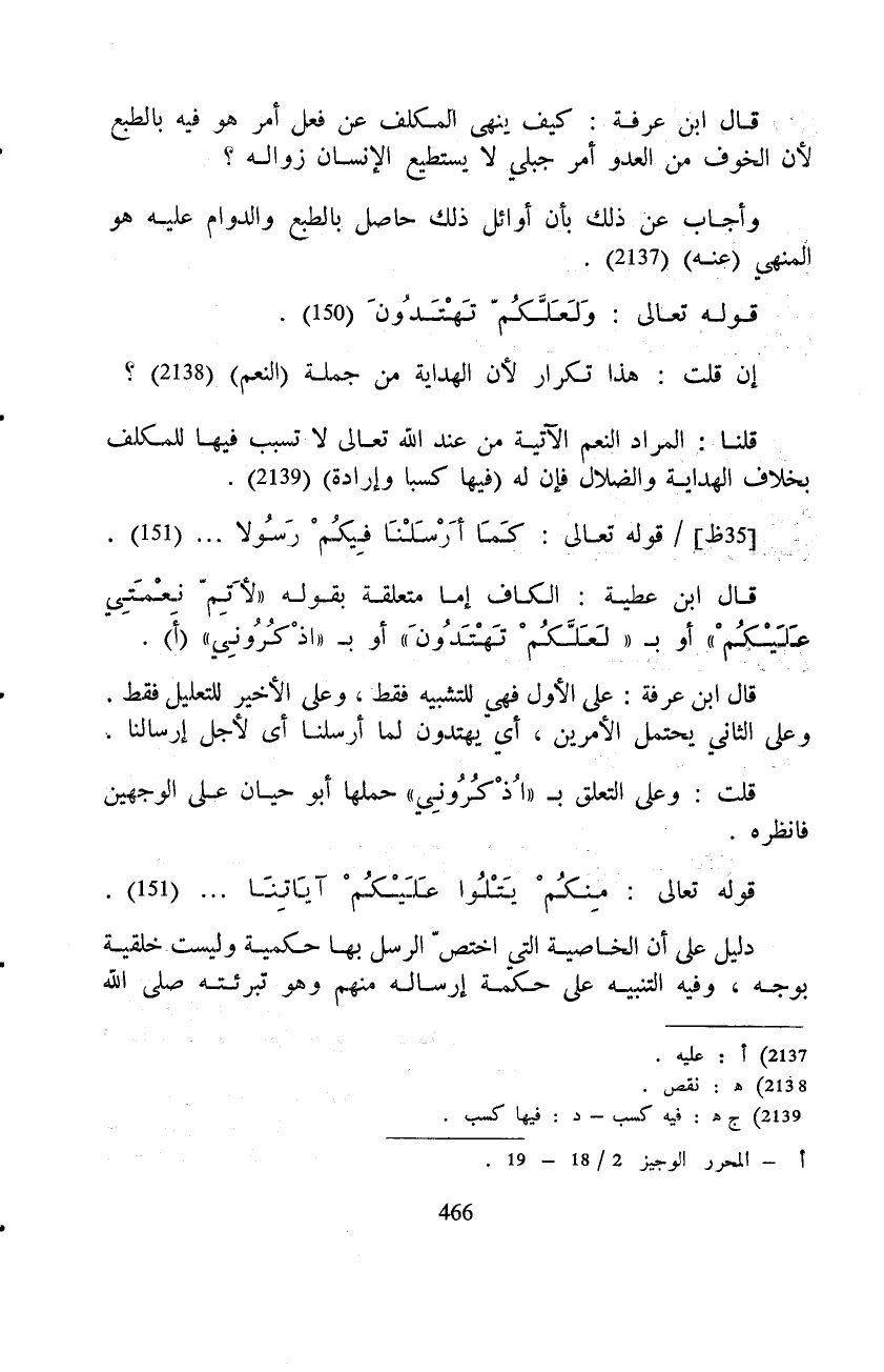 قال ابن عطية: الكاف إما متعلقة بقوله {لأُتِمَّ نِعْمَتِي عَلَيْكُمْ} أو ب {لَعَلَّكُمْ تَهْتَدُونَ} أو ب {اذكروني} قال ابن عرفة: على الأول فهي للتشبيه فقط، وعلى الأخير للتعليل فقط. وعلى الثاني يحتمل الأمرين، أي يهتدون لما أرسلنا أى لأجل إرسالنا.