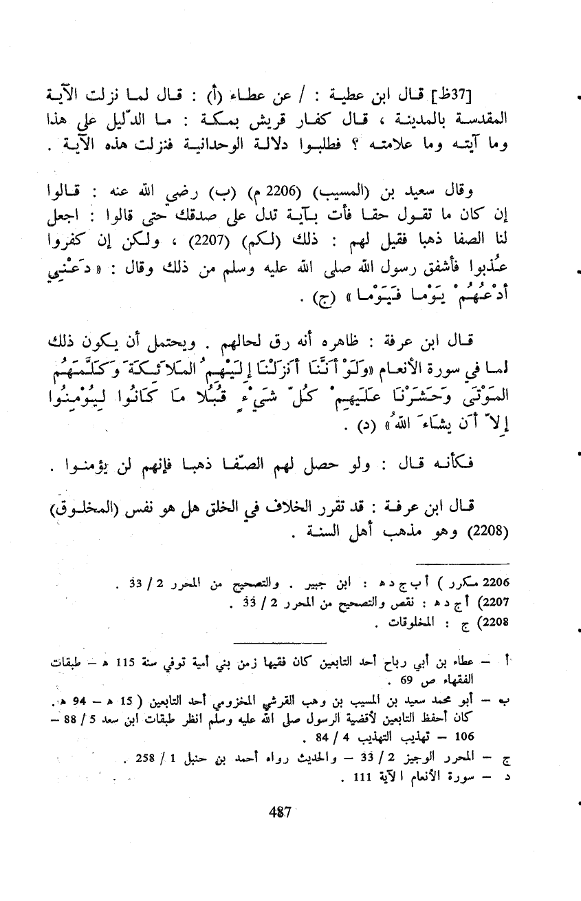 قال ابن عرفة: قد تقرر الخلاف في الخلق هل هو نفس (المخلوق) وهو مذهب أهل السنة.