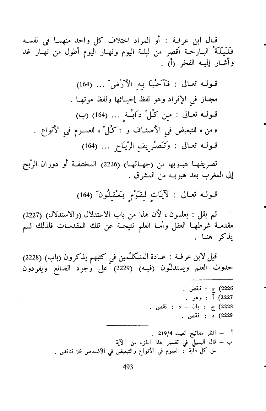 قيل لابن عرفة: عادة المتكلّمين في كتبهم يذكرون (باب) حدوث العلم ويستدلّون (فيه) على وجود الصانع ويفردون